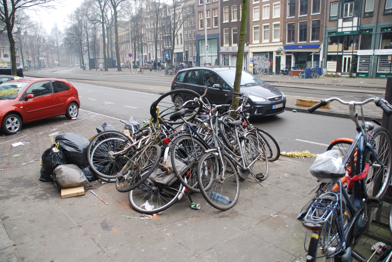 Предыдущее фото: Утро, первое января 2009, Дамрак — одна из центральных улиц Амстердама Текущее фото: Куча великов.